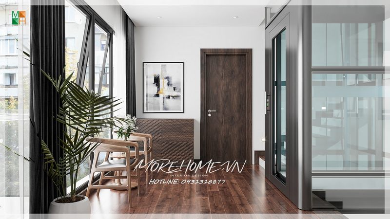 Thiết kế nội thất biệt thự, nhà phố dành thêm một khoảng không gian hành lang để đặt bộ bàn ghế nhỏ cho 2 người thư giãn, ngắm cảnh.